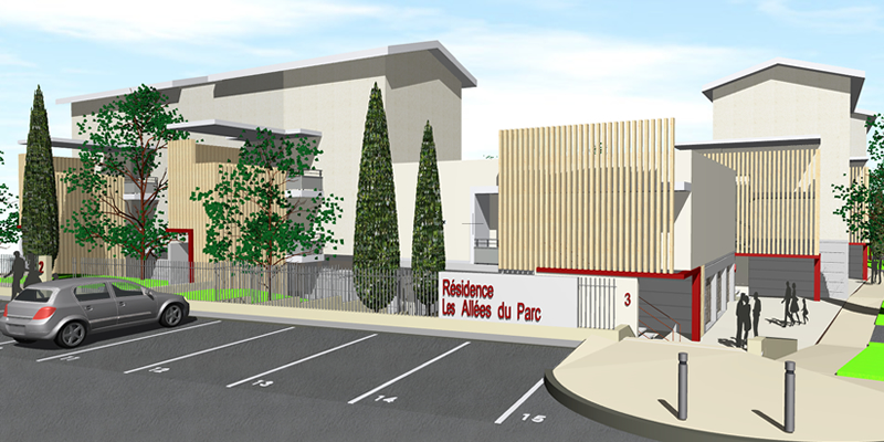 Un deuxième ensemble constitué de 7 villas individuelles de plain-pied ou R+1. Enfin, un parc, poumon vert à l’échelle du projet, vient faire le tampon entre ces deux ensembles.