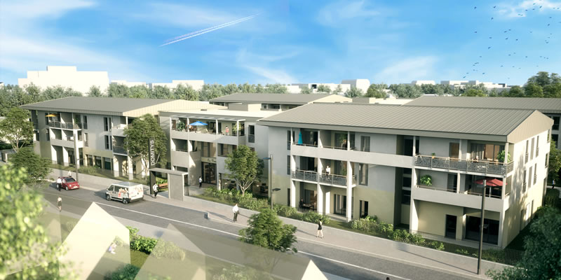 Un parc borde la résidence au sud et à l’est, permettant la conservation de nombreux arbres existants.